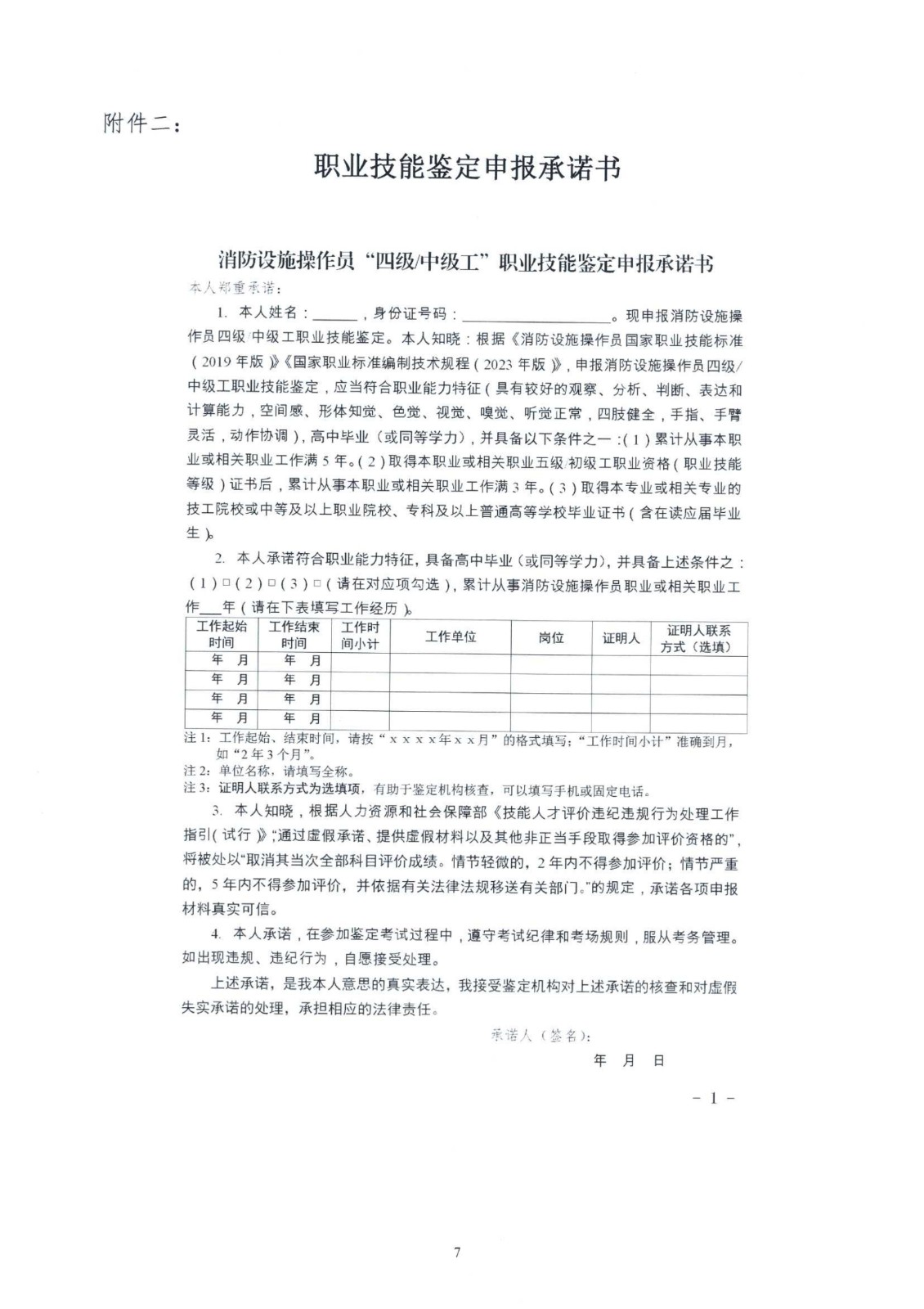 消防设施操作员“四级中级工”职业技能鉴定申报承诺书.docx