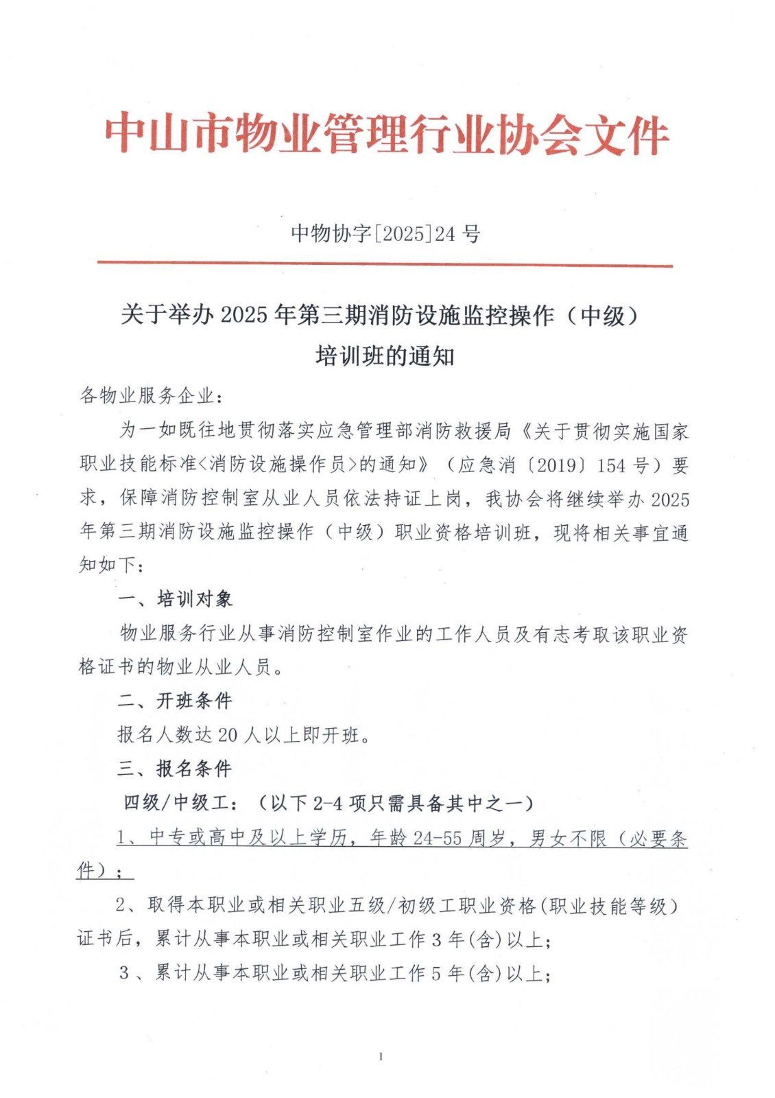 关于开办2025年第三期消防设施监控操作(中级)培训班的通知.pdf