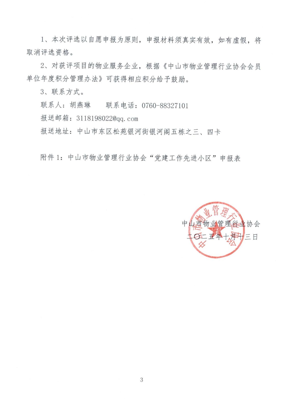 关于开展2025年中山市物业管理行业协会“党建工作先进小区”创建和评选活动的通知