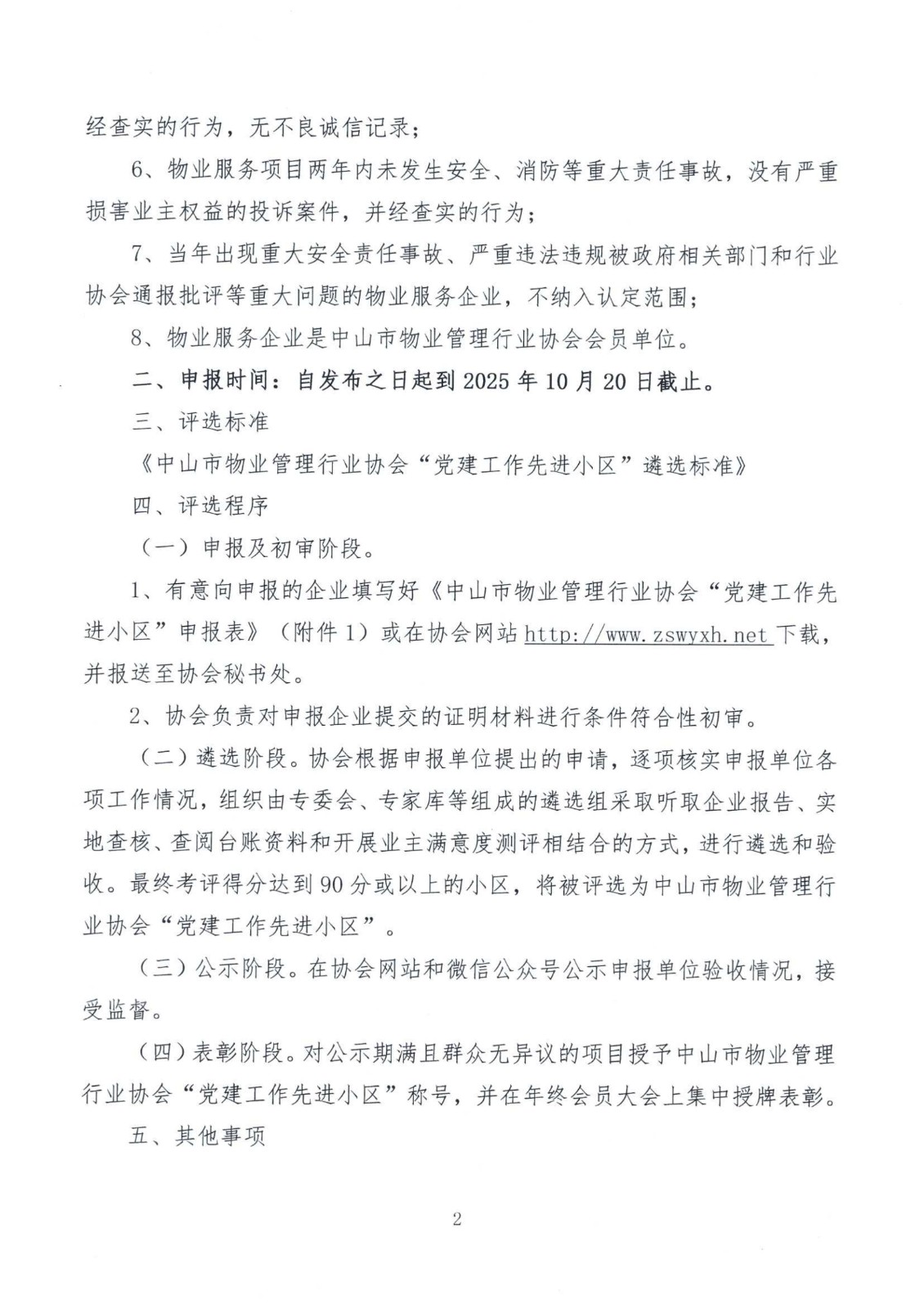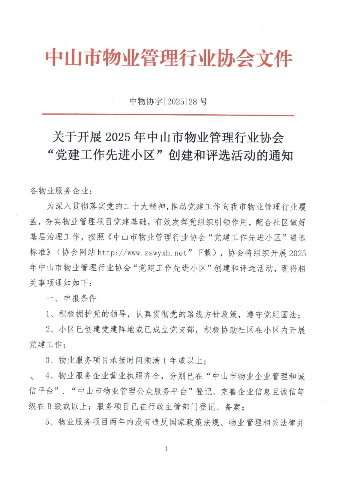 关于开展2025年中山市物业管理行业协会“党建工作先进小区”创建和评选活动的通知.doc