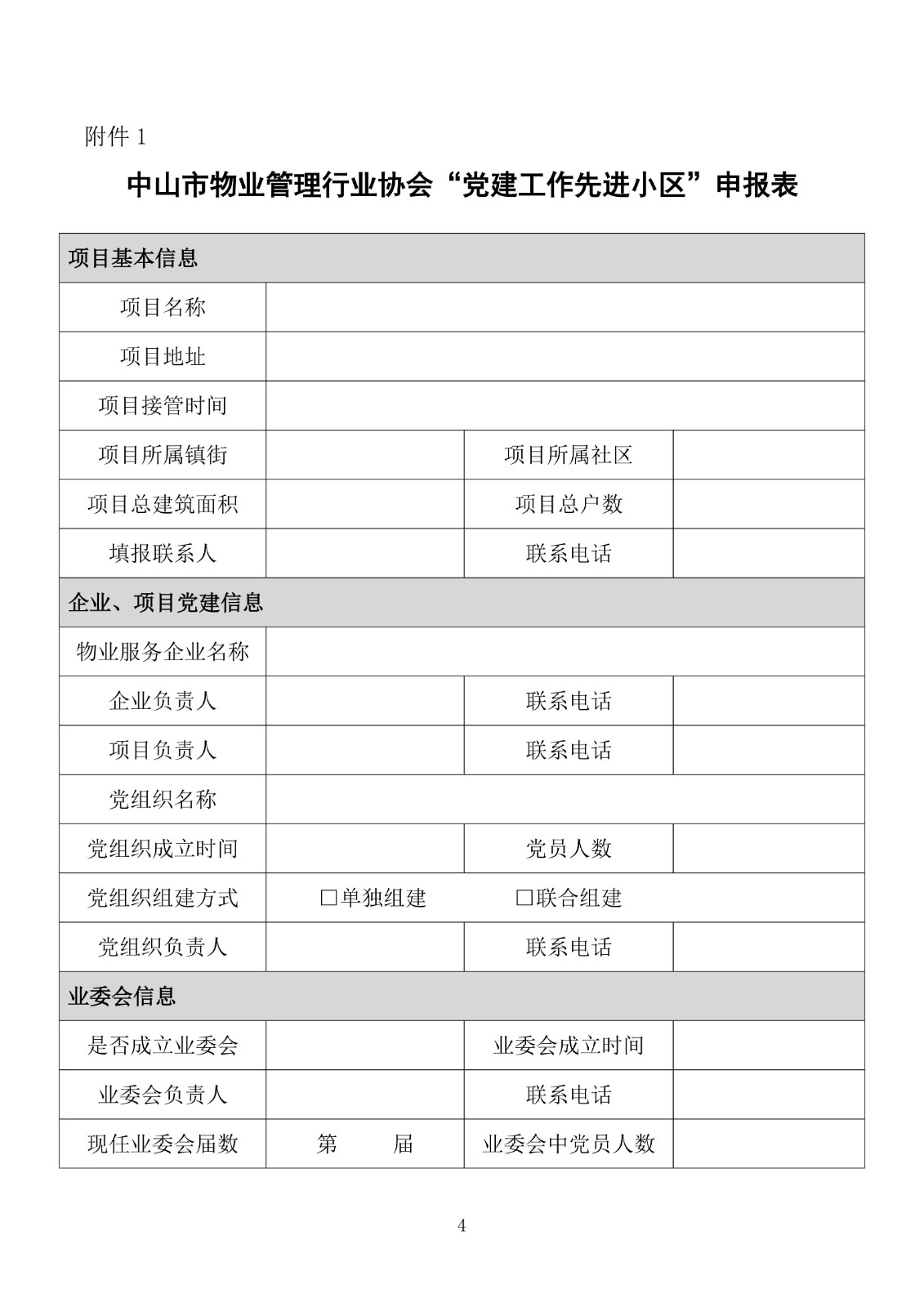 中山市物业管理行业协会“党建工作先进小区”遴选标准.doc