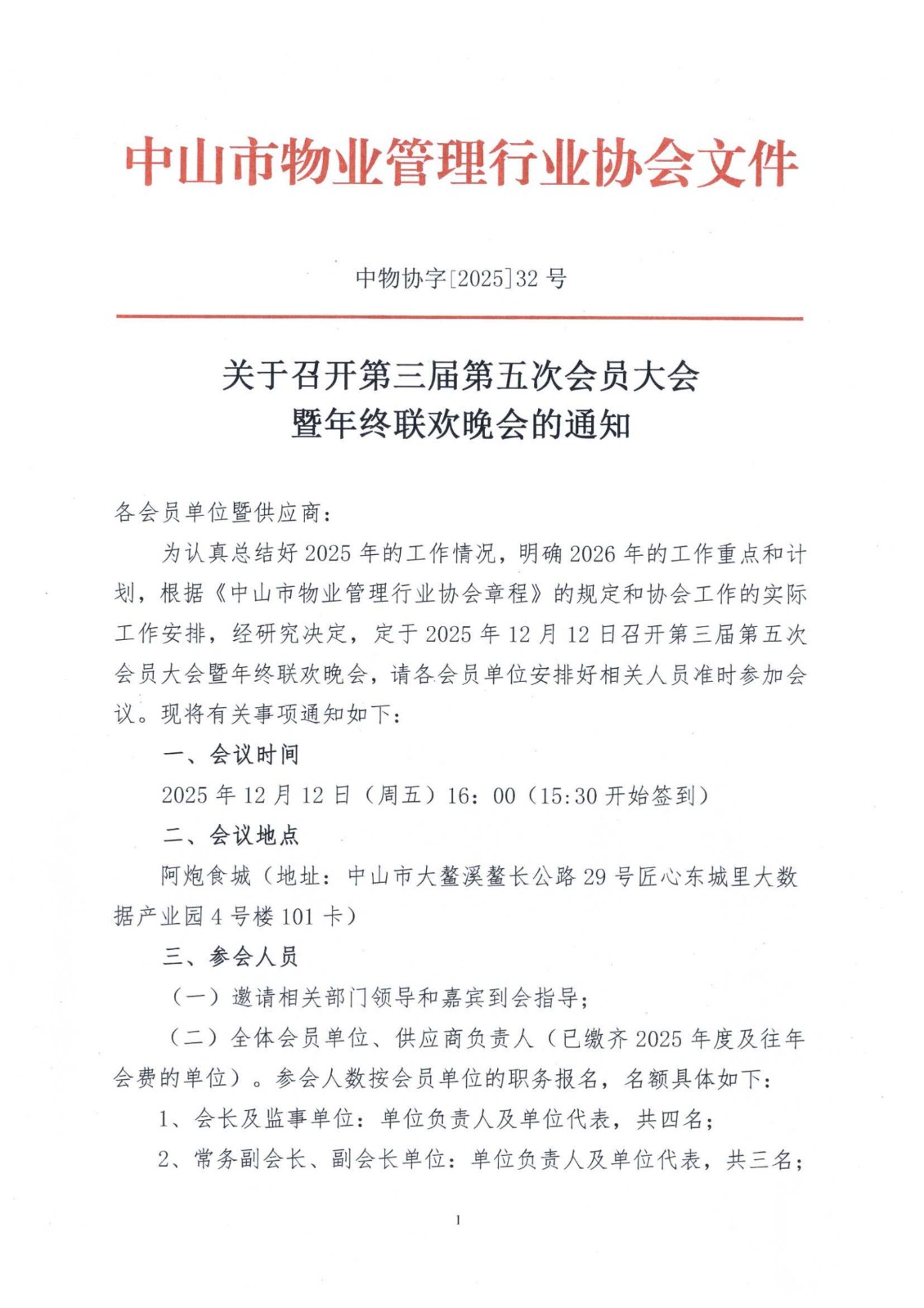 关于召开第三届第五次会员大会暨年终联欢晚会的通知